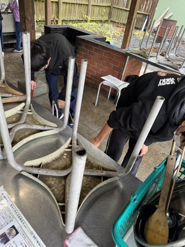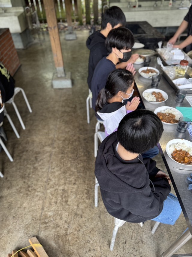 美味しいカレーライスが出来上がりました。食事後は振り返りと片付けです。