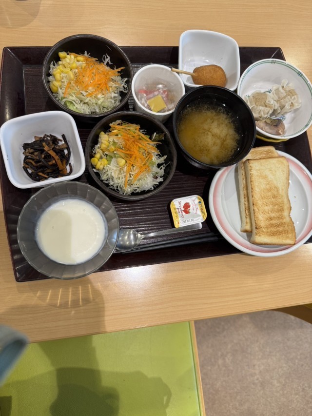 2日目朝食です。食事後は、さがみ湖MORIMORIへ出かけます。