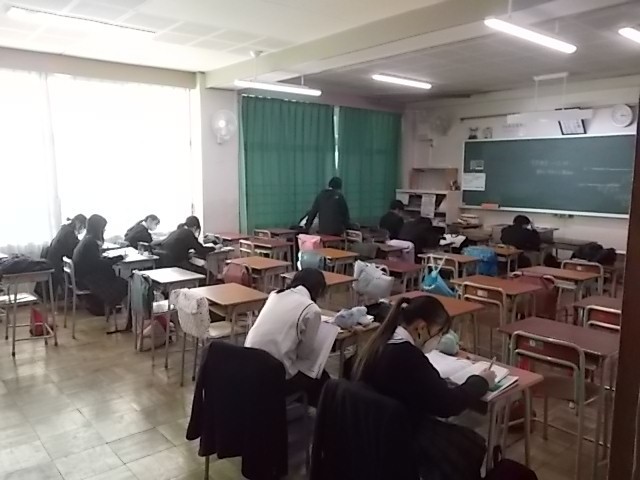 来週水曜日か始まる定期考査に向けて、放課後補習教室を行っています。希望者は静かに問題を解きながら分からない内容を担当の先生へ質問しています。