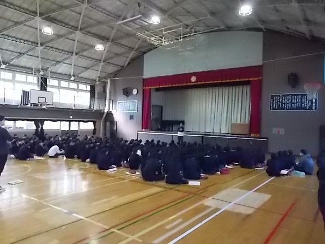 1年生はスキー教室に向けての取組について、学年集会を行いました。2泊3日の宿泊行事です。しっかりと準備をして臨みましょう。