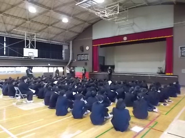 1年生は中学校で初めての宿泊行事を明日に控え、学年集会を行いました。生徒実行委員の皆さんを中心に、思い出に残る楽しい旅行になるように時程や決まりごとの確認を行いました。