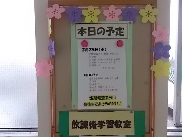 2月25日(水) 第4回定期考査2日目