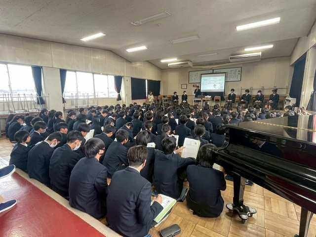 本日は、先週卒業したばかりの卒業生をお迎えして、2学年主催の「卒業生の話を聞く会」が実施されました。受験を終えたばかりの先輩方のお話は、どれも参考になるものばかりで、必死にメモを取る2年生の姿が見られました。この春休み中にやるべきことや、志望校の決め方、勉強の仕方、普段の生活で気を付けるべき点や誘惑に負けそうになった時にはどうすればよいのかなど、貴重なお話をピンポイントで聞くことができました。