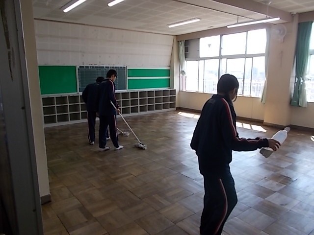 3学期の大掃除を行いました。一人ひとりが割り当てられた掃除場所でしっかりと活動しました。最後は整美委員会の生徒がクラスのワックスがけを行いました。