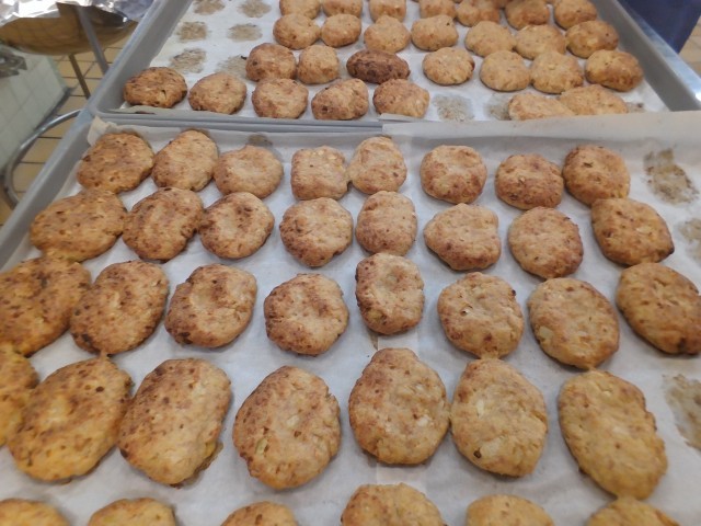 よく練ります。小判型に形成し、180度に熱したオーブンに入れて約20分焼きました。