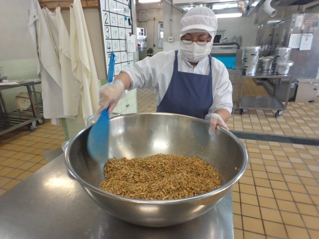 ”ごまめナッツ"はアーモンドと小魚のいりことゴマが入っています。よくかんでいただきましょう。