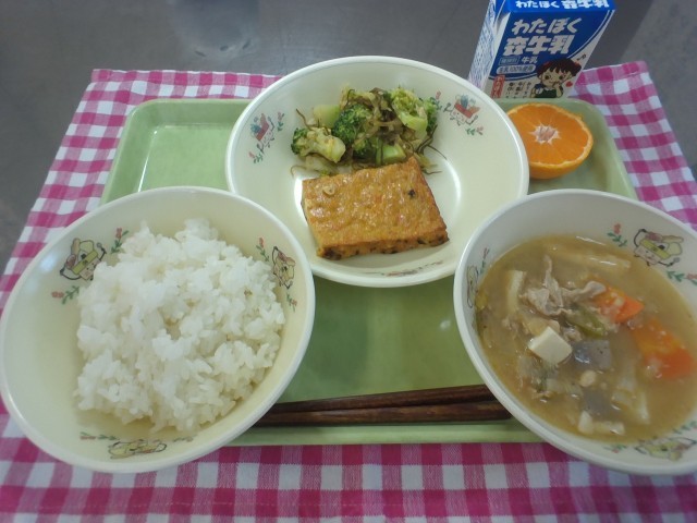 今日の給食は八王子産ブロッコリーを使った「ブロッコリーの昆布和え」です。