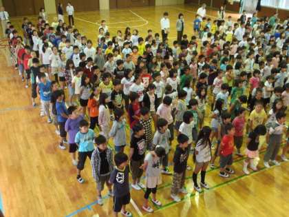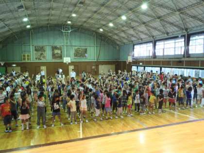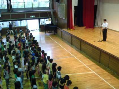 坂本校長から、1学期の児童の頑張りを誉める話がありました。