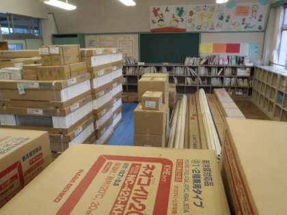 2階の絵本室が資材置き場となっており、絵本室は使いにくい状態となっています。
