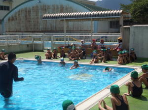 それを前に、昨日は4年生がプール納め、今日は1年生と6年生がプール納めです。