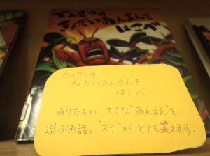 (写真中:よしながこうたく作「でんせつの きょだいあんまんを はこべ」)