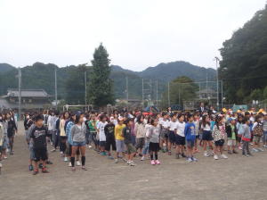10月9日(火)連休明けのこの日、校庭で全校朝会がありました。