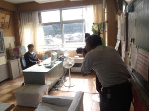 朝会後、教職員の集合写真、クラス写真、また、その後には、個人の写真や校長の写真も撮りました。