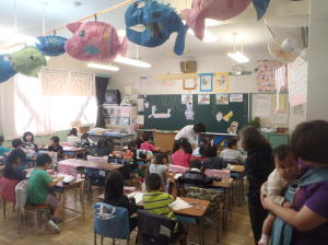 「はしの うえの おおかみ」と言うお話を使って、「思いやり、親切」に付いて、話し合い、考えを深め合いました。