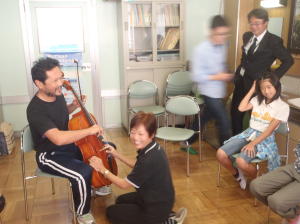 自身、ギターやベースの奏者である山田主任教諭は、指ではじいて演奏していました。