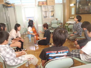 そんな中、小学生にも是非素敵な音楽を身近で聞かせたいと、音楽の鈴木主任教諭が、この素敵な会を見つけて申し込み、運良く当たって実現した今回の「鑑賞教室&体験教室」でした。