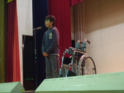 児童会とPTAで集めている、アルミ缶のプルトップ等ですが、換金しお金が貯まり、車いすを購入しました。