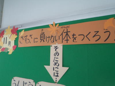 11月の保健目標は「かぜに負けない体を作ろう!」です。(写真上)