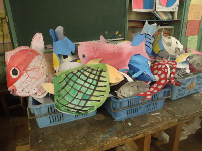 でも、どうやら学芸会の小道具らしいものがたくさん並んでいます。