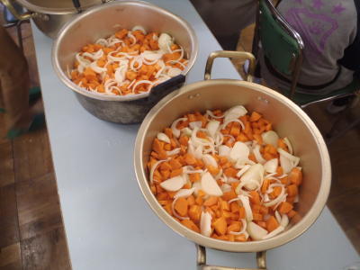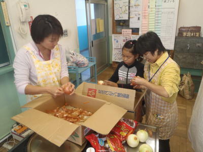 タマネギの皮むきやカッティングで、みんな涙ながらの戦い(?!)となっていましたが