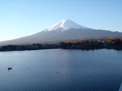 写真中:河口湖から見た富士山。