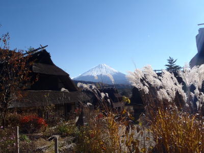 下:西湖 いやしの里 根場 から見た富士山。