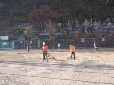 運動委員会は校庭の整備を行いました。