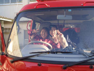 特別に消防自動車の運転席にも座らせていただきました。(写真下)