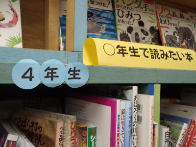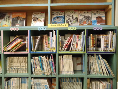 図書担当の淺居教諭が、国語の教科書に載っている「○年生で読みたい本」を、学年15冊ずつ購入し、図書室絵本室に整備してくれました。