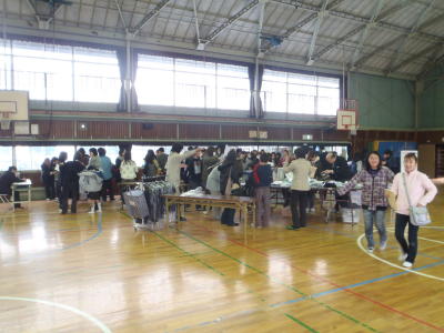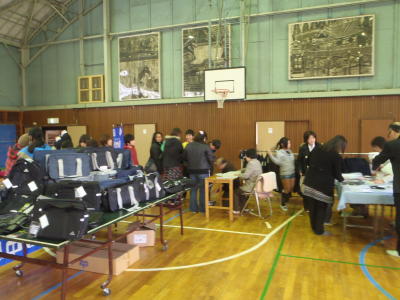 標準服の採寸の他、カバンや上履き、体操服、ウインドブレーカーなどの「恩中グッズ」もいろいろ販売されました。