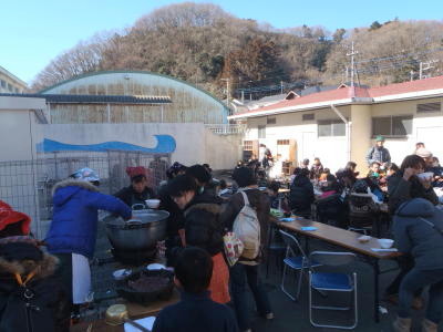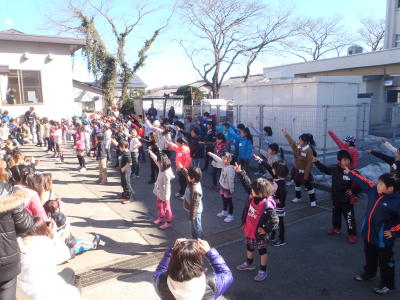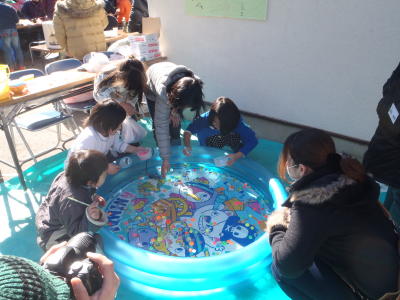 1月27日(日)10時から、恩方西学童保育所のお祭りが、学童さんの前の庭(恩一小の敷地内)で行われました。