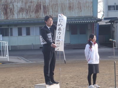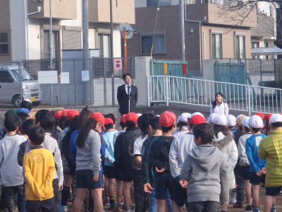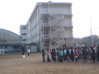 2月5日(火)校庭で全校朝会が行われました。