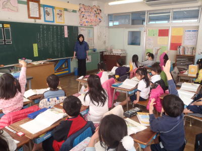 「○○だと思います。どうですか。」「いいです。」きちんとした発表の仕方が、1年1組の児童には身に付いていました。