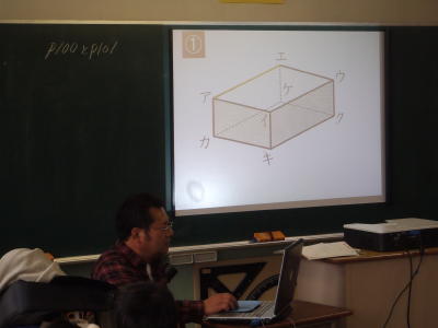 最後はパワーポイントとプロジェクターを利用して、答え合わせを行いました。(写真下)