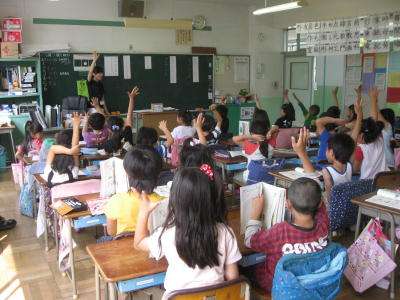 1年1組では、沓澤教諭が国語の「ひらがな」の勉強をしていました。