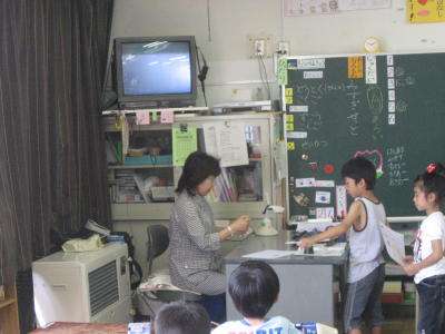 実物投影装置を用いたり、「ビフォーアフター」と称して、学習前と学習後で、どれだけひらがなが上手になったか評価したりしていました。