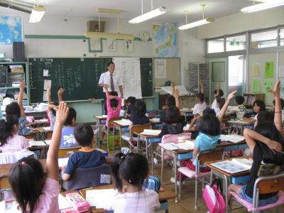 2年1組では教育実習生で東京学芸大学4年生のの米川先生が国語で「カタカナで表す言葉」の授業をしていました。