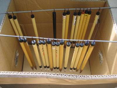教室の隅には、学級通信で紹介されていた、毛筆書写の激闘の後(工夫された筆置き場)がありました。