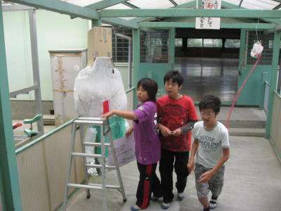 プール開きの帰り道に、作成中の様子を撮影すると、