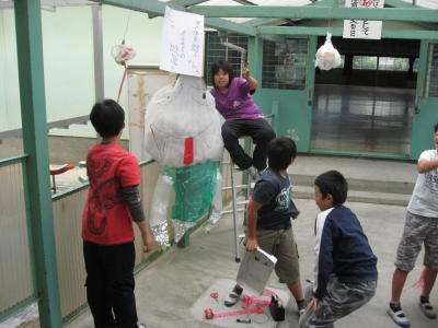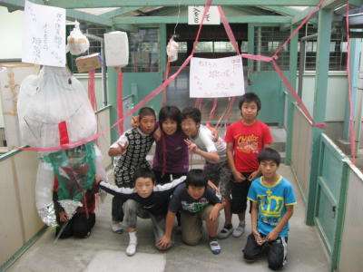 3・4時間目は6年2組が妖怪作りに励みました(!?)