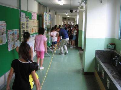 教室のある、3階ではうるさくなり他のクラスの迷惑になるので1階に降りてきたと言うわけです。