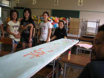 9月3日(金)と6日(月)に体育館で行われる、夏休み作品展の看板作りをしていました。