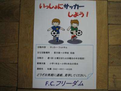 少年サッカーのチームで、主に毎週土曜日の午前中恩一小の校庭で練習をしています。(日曜日に試合の時もあります。)