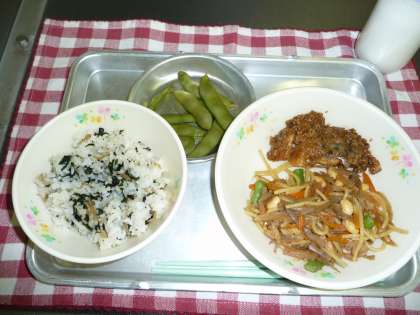 変わりきんぴら・えだまめ・牛乳