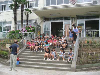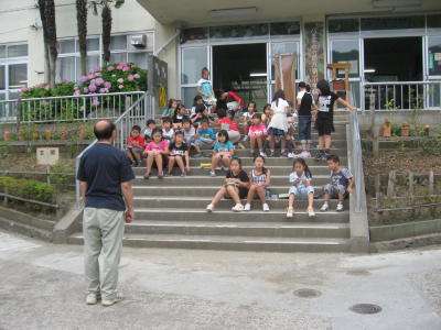 残りのもう一クラスは職員室前の廊下で体験しました。