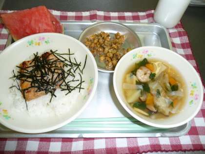 大豆の煮物・小玉すいか・牛乳