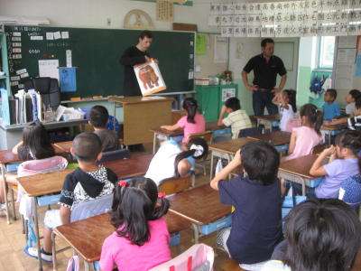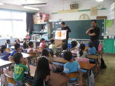 2年生は、「ブラウン ベアー」の絵本を読んでもらいながら、授業が進んでいきます。