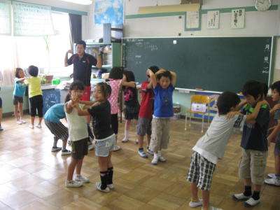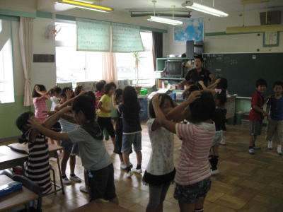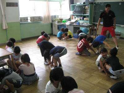 二人組みを作って、三浦教諭の指示で、相手の体の部位を押さえる活動(ゲーム)をしていました。