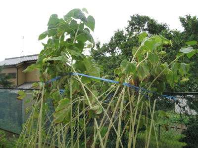 写真中・下:2年生のヒマワリもきちんと整えられ、これなら、台風の影響があったとしても大丈夫!