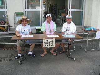 受付業務は、恩方夕やけスポーツクラブの皆さんが、暑い中交代で行ってくださっています。(写真下:午前中担当の方)